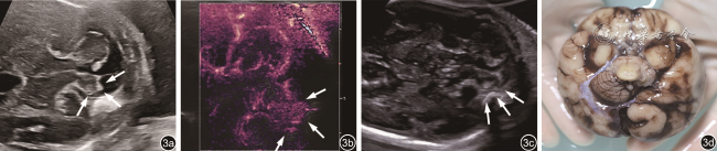 | 2019 | 例5/25 | 左侧小脑体积减小,边界不规则,左侧小脑半球囊性无回声区,后颅窝池与第四脑室相通;彩色多普勒:左侧小脑上动脉未显示;超声提示:LCH | 左侧小脑半球片状异常信号,考虑液化囊变;诊断:LCH | 蚓部显示不清 | 小脑供血动脉异常 | 引产后尸检 |