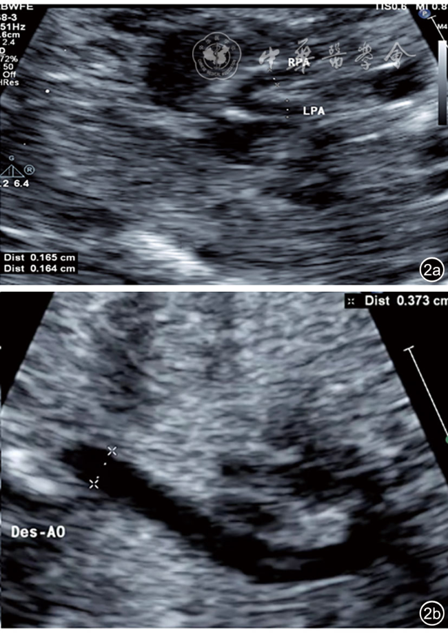 [4]应用心血管造影与超声心动图分别测量主肺动脉(main pulmonary artery,MPA)、右肺动脉(right pulmonary artery,RPA)、左肺动脉(left pulmonary artery,LPA)的近端、中端、远端内径以及肺动脉狭窄处内径,发现超声与心血管造影测值高度相关,提示超声测量的MGI可以较准确地评估肺动脉的发育程度,指导手术方式的选择。过去MGI主要用于成人或儿童CHD患者的评估,但胎儿时期血流动力学及肺发育情况与出生后截然不同,近些年已有对胎儿MGI的研究报道。郭勇等