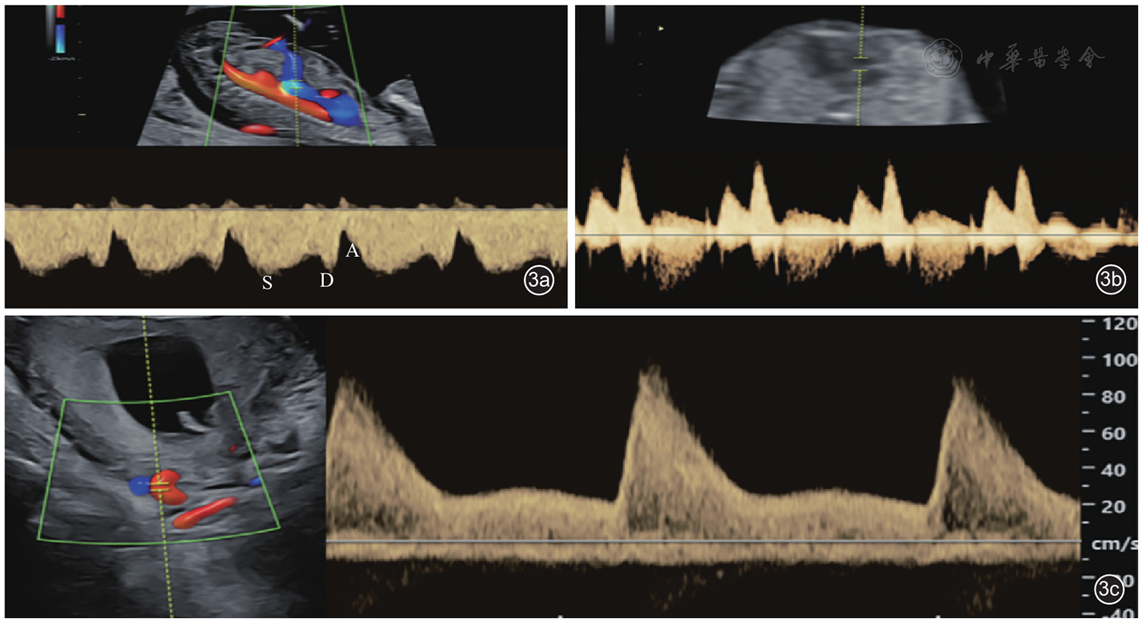 图2 11+0~14+0周胎儿解剖结构扫查。图a:正中矢状切面清晰显示颜面部、鼻骨、后颅窝、颈项透明层(NT)、脊柱、腹壁、横膈膜;图b:评估胎盘的外观、位置及胎盘脐带插入点;图c:判断羊膜囊性及绒毛膜性("λ"征或"T"征);图d:侧脑室横切面显示骨化颅骨、连续大脑镰、两侧对称的大脑半球、侧脑室及脉络丛;图e:丘脑横切面显示骨化颅骨、丘脑、大脑脚;图f:后颅窝横切面显示丘脑、小脑、第四脑室、中脑导水管、小脑延髓池;图g:NT切面显示前额、鼻尖、鼻骨、上腭和下颌及相关后颅窝结构;图h:面部横切面显示眼眶、上颌突等;图i:鼻后三角冠状切面显示鼻骨、上颌骨、下颌骨、硬腭、下颌间隙;图j:胸部四腔心横切面评估肺、肋骨、主动脉、心脏位置;图k:四腔心切面彩色多普勒;图l:三血管-气管切面彩色多普勒;图m:腹部横切面显示胃泡、肝及肋骨;图n:脐带腹壁入口横切面显示完整腹壁及脐带插入点;图o:膀胱两侧脐动脉彩色多普勒;图p:膀胱横切面;图q:腹部正中矢状切面显示膀胱、脊柱、横膈膜;图r:胸腹部冠状面显示双侧肾脏;图s:脊柱全长矢状切面;图t、u:分别表示双侧下肢及上肢的三个节段 |