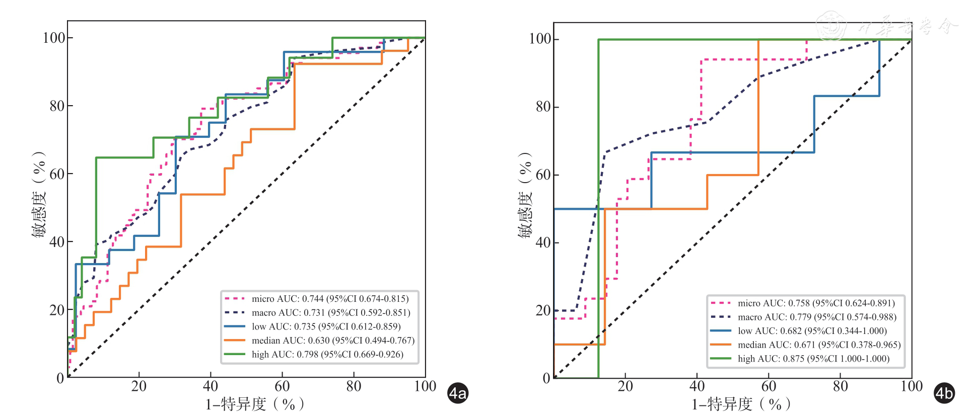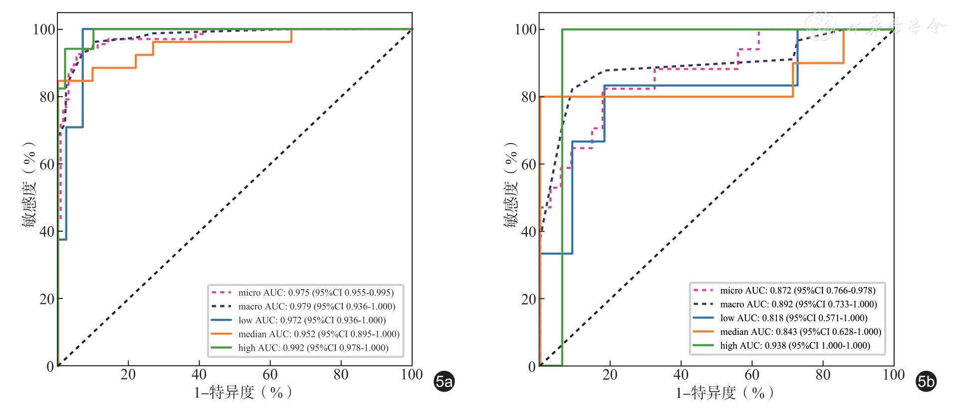 注:AUC 为曲线下面积;CI 为置信区间;表格中结果均为微平均值 |